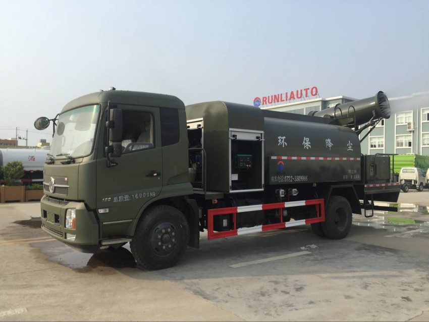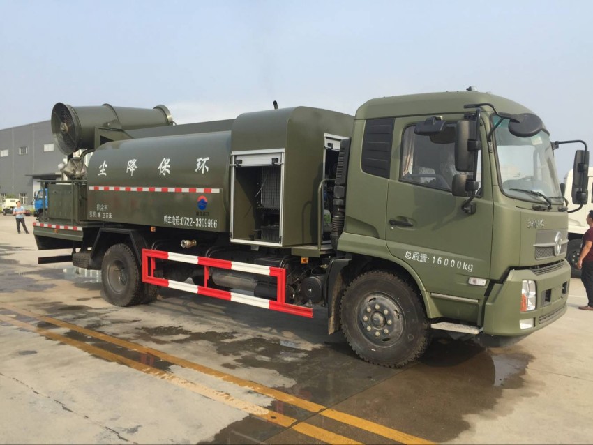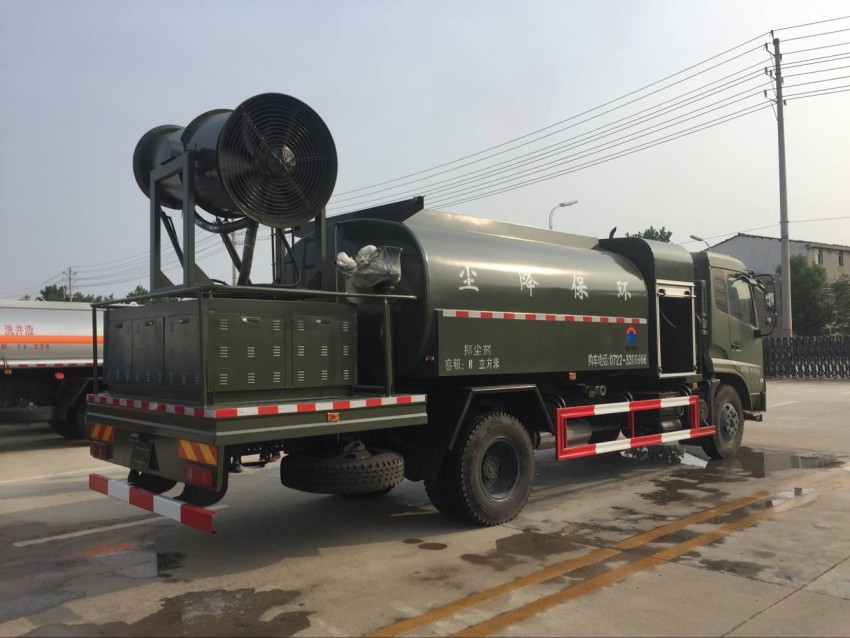 河南鄭州陳總采購的綠色霧炮車為環保事業做貢獻,東風天錦抑塵霧炮車,噴霧距離60米。罐體容積10方,康明斯發動機180馬力。